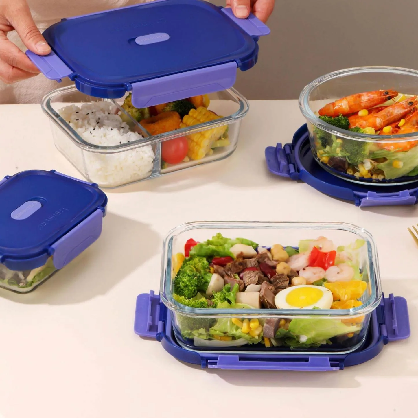 This glass food storage container is made of high borosilicate glass, known as the "king of glass". It features extremely high transparency, a smooth and flat surface, corrosion resistance and wear resistance. It can withstand high temperatures up to 500°C and low temperatures down to -20°C. It is safe and hygienic for use in the oven, microwave, dishwasher, refrigerator, as well as for steaming and boiling.