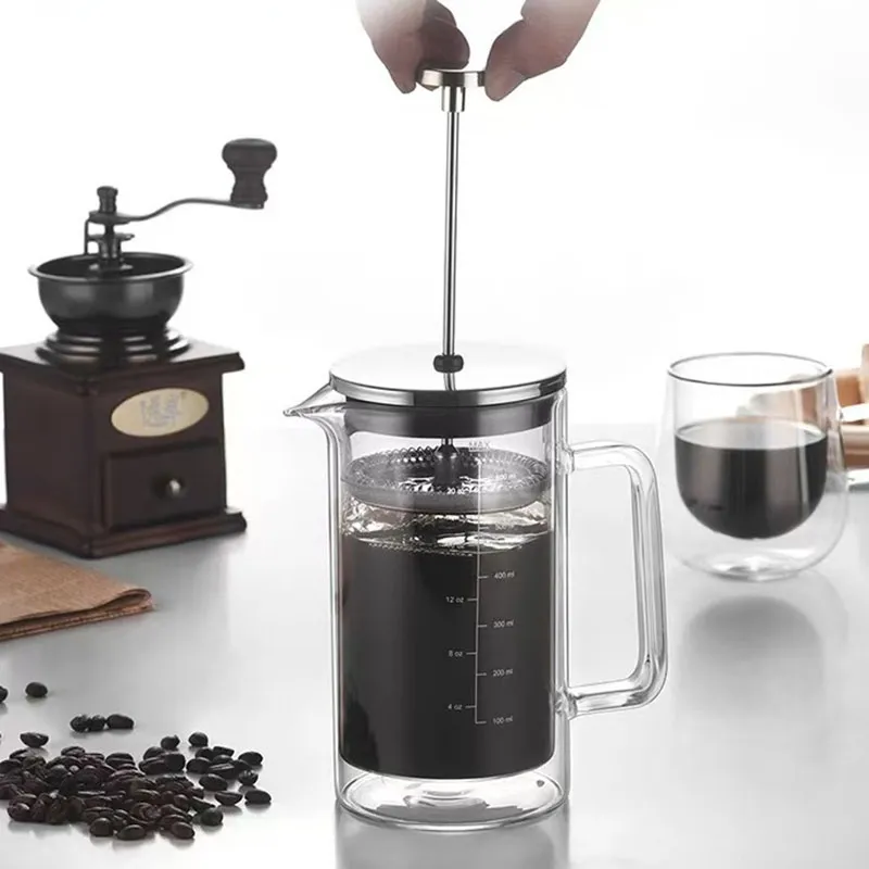 Double Wall Insulated High Borosilicate Glass French Press Coffee Maker