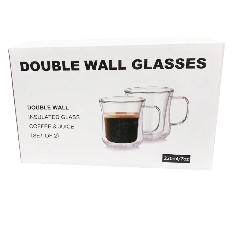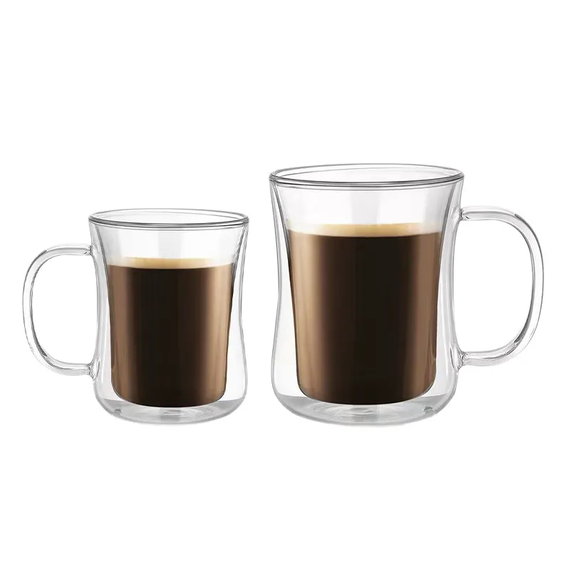 High Borosilicate Double-walled Glass Cup with Handle 220ml 400ml