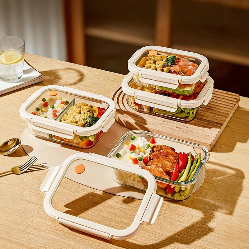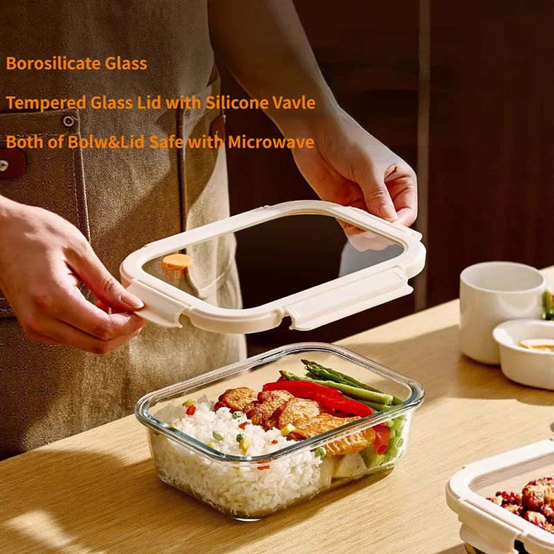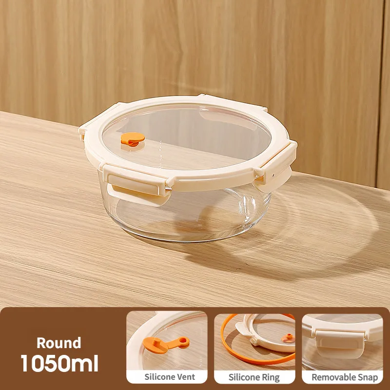 This product consists of a borosilicate glass bowl and a tempered glass lid. The lid is equipped with a sealing ring for moisture-proof and leak-proof performance.