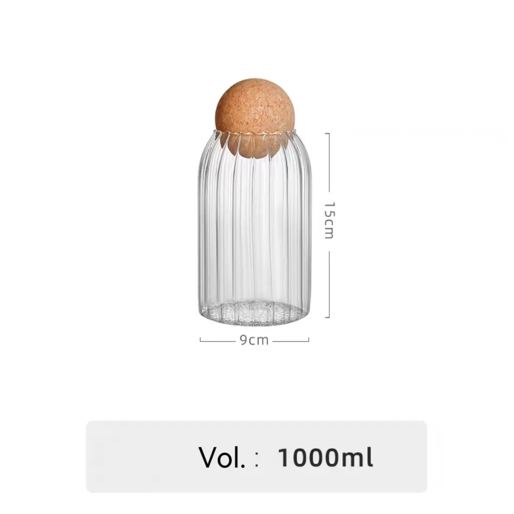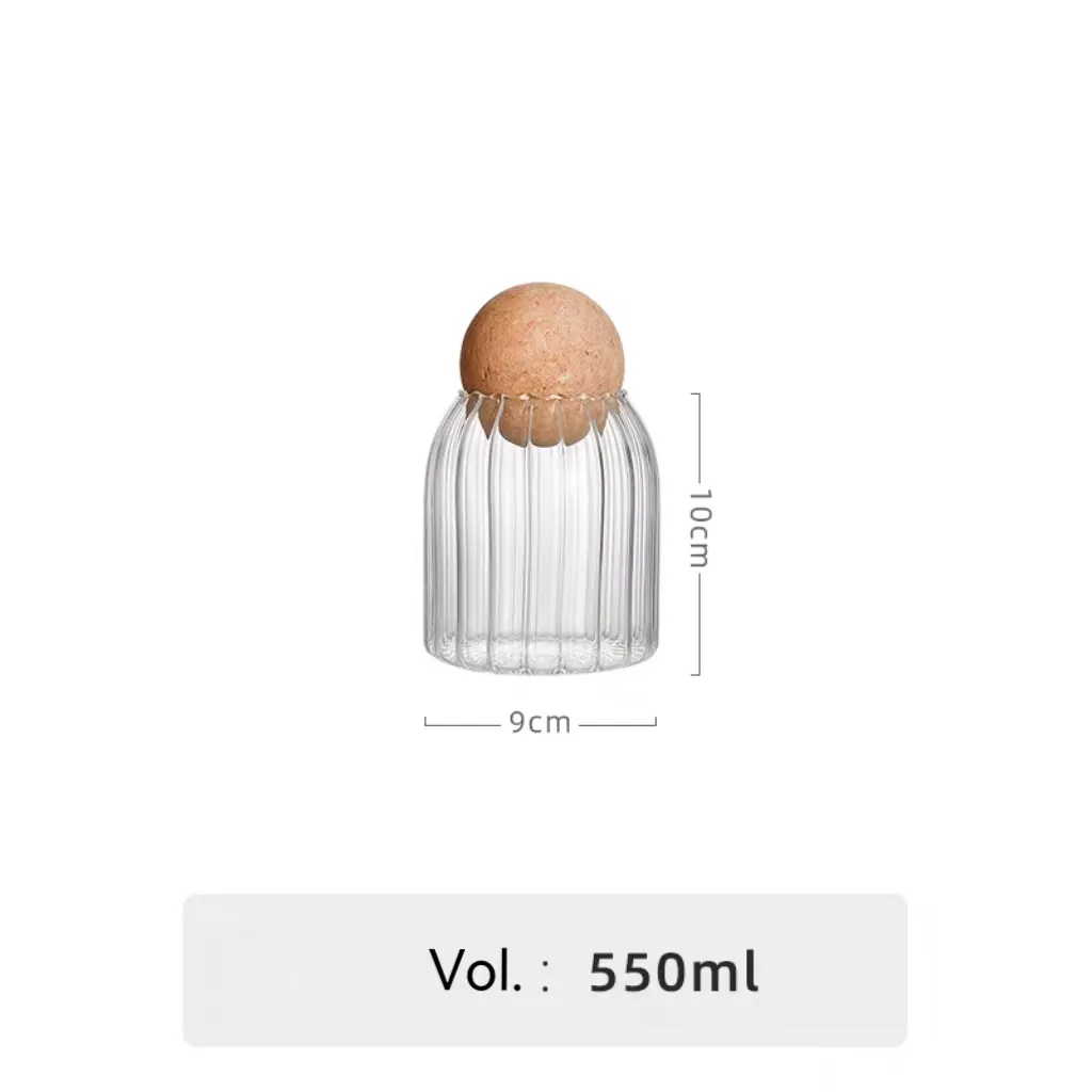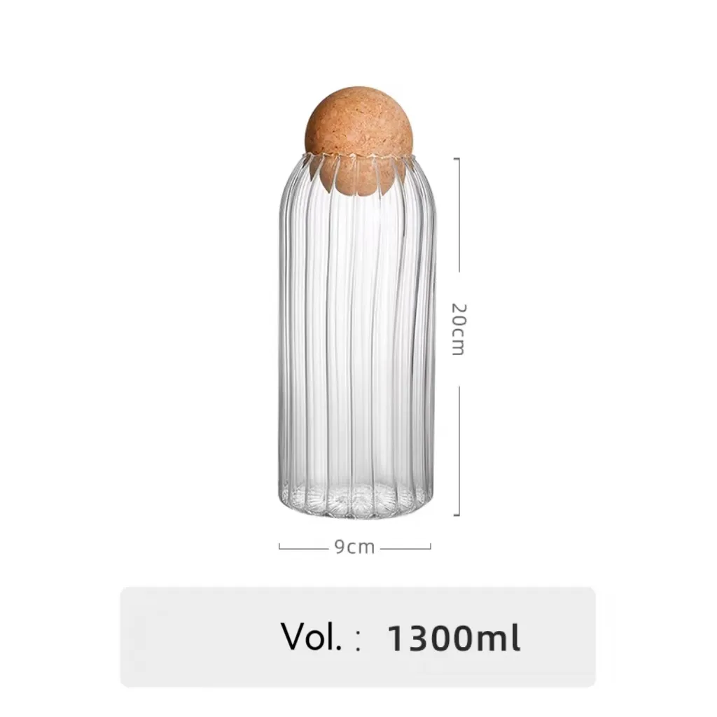 | Name | Ribbed Glass Storage Jar with Cork Ball Lid | |||||