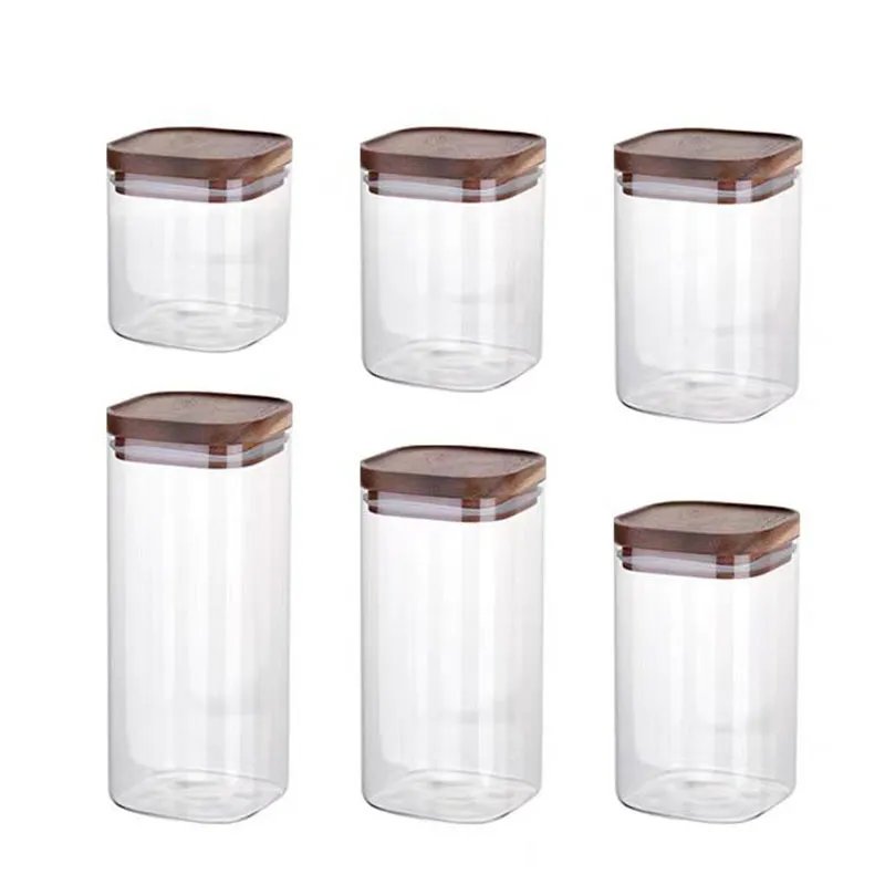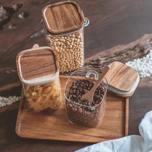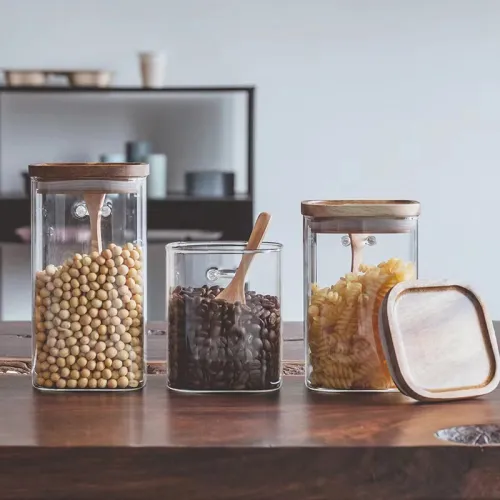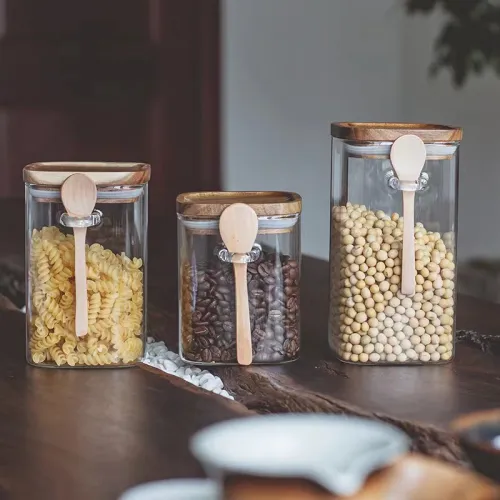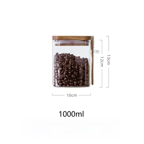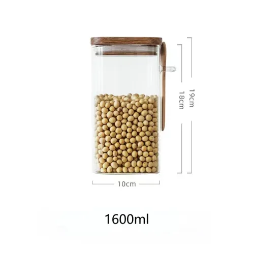 | Product Name | Square glass food storage jar with wooden lid & bamboo spoon | |||||